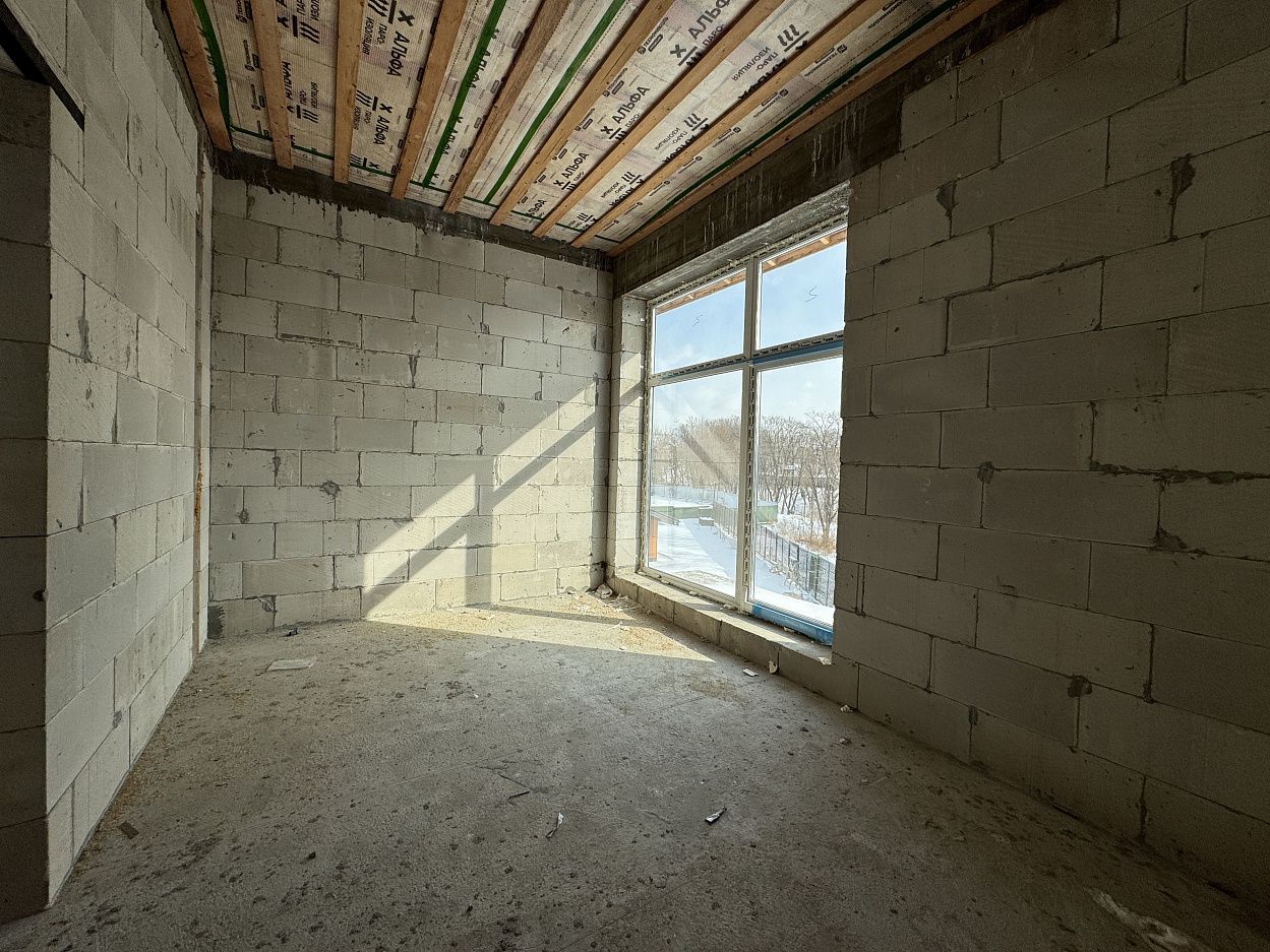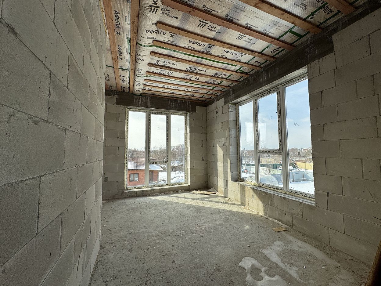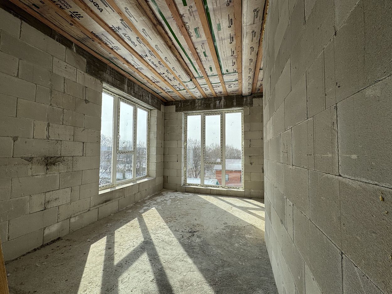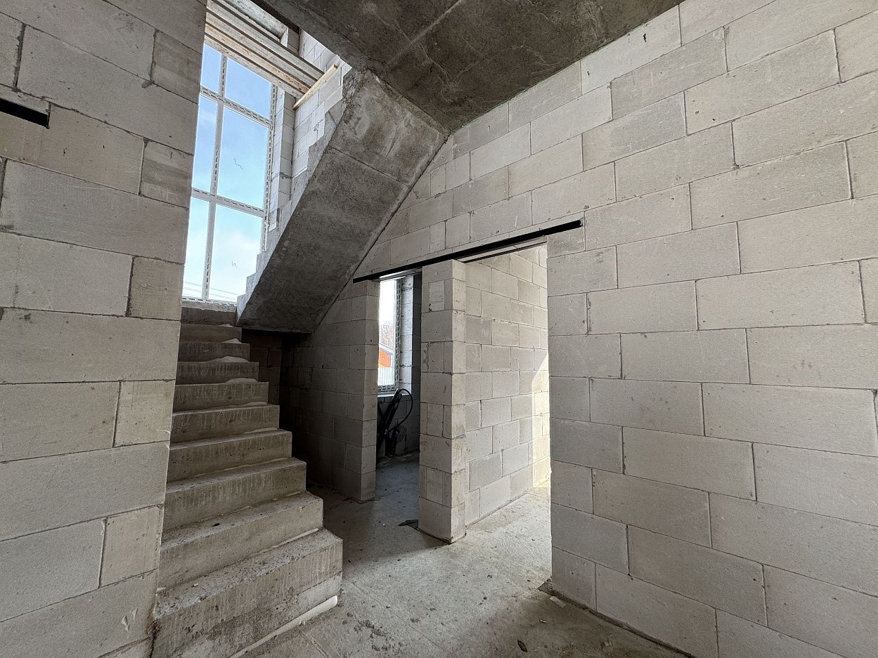 Дом выполнен на монолитной железобетонной фундаментной плите, стены выполнены из автоклавного газобетонного блока толщиной 400мм. Кровля смонтирована по деревянному балочному перекрытию, утепление минеральной ватой. Кровельное покрытие –гибкая черепица ТехноНИКОЛЬ Shinglas. Выполнен полный цикл земляных работ по подготовке пятна застройки: выполнено изъятие и вывоз плодородного слоя, пучинистый грунт заменен на непучинистый, устроена дренажная система.