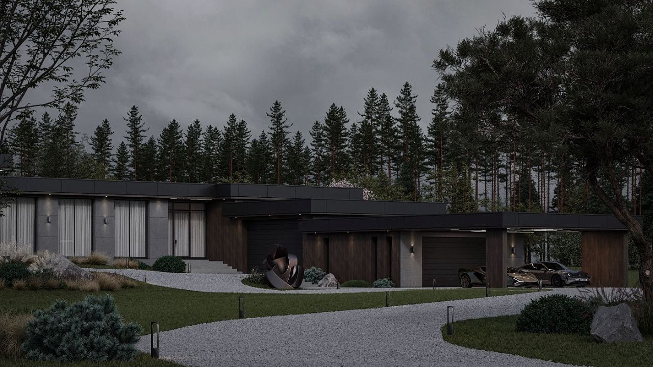 Стильный дом с навесом для авто
