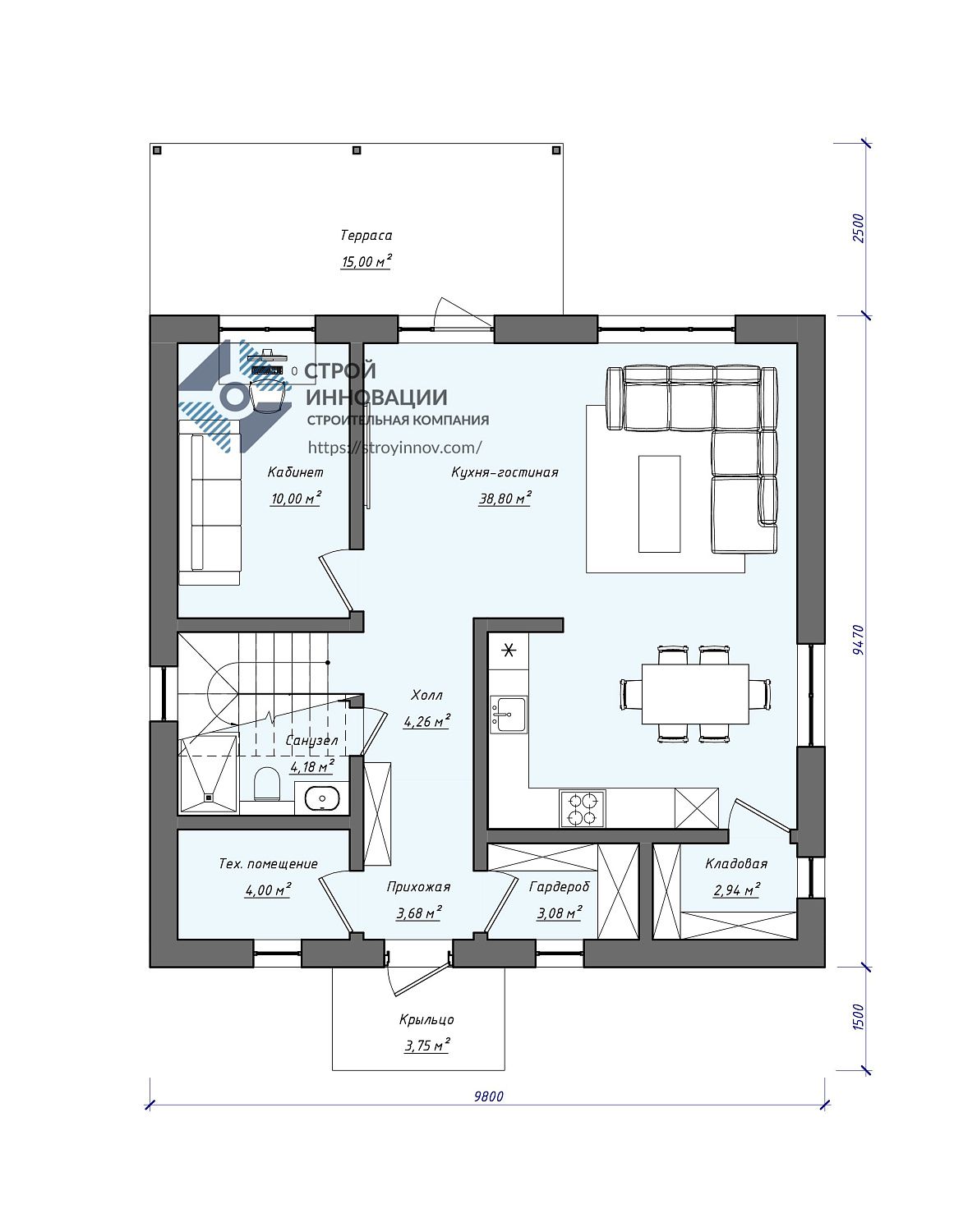 - Габариты дома - 8,9 х 12 м
