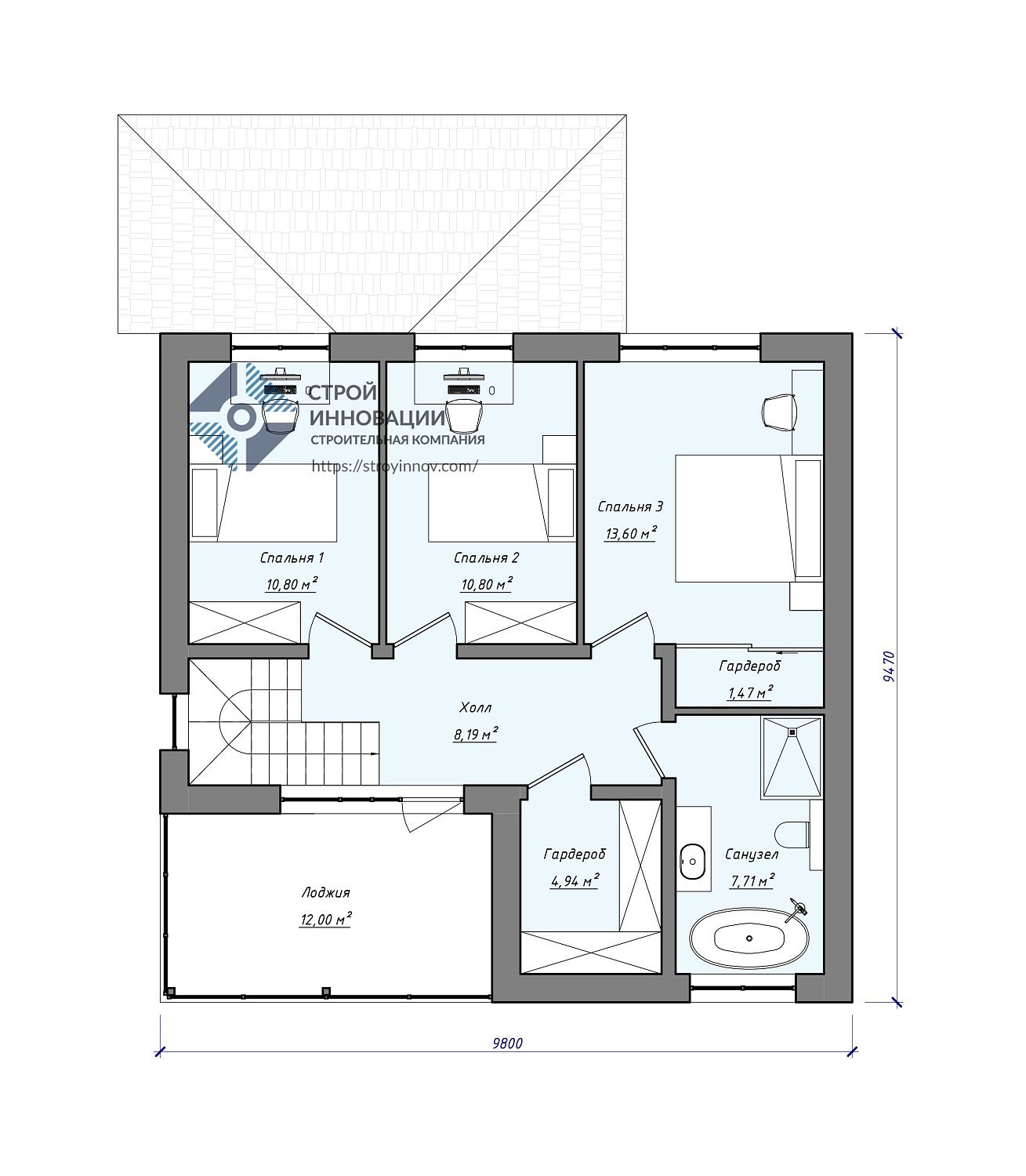 - Площадь кровли - 168 м2