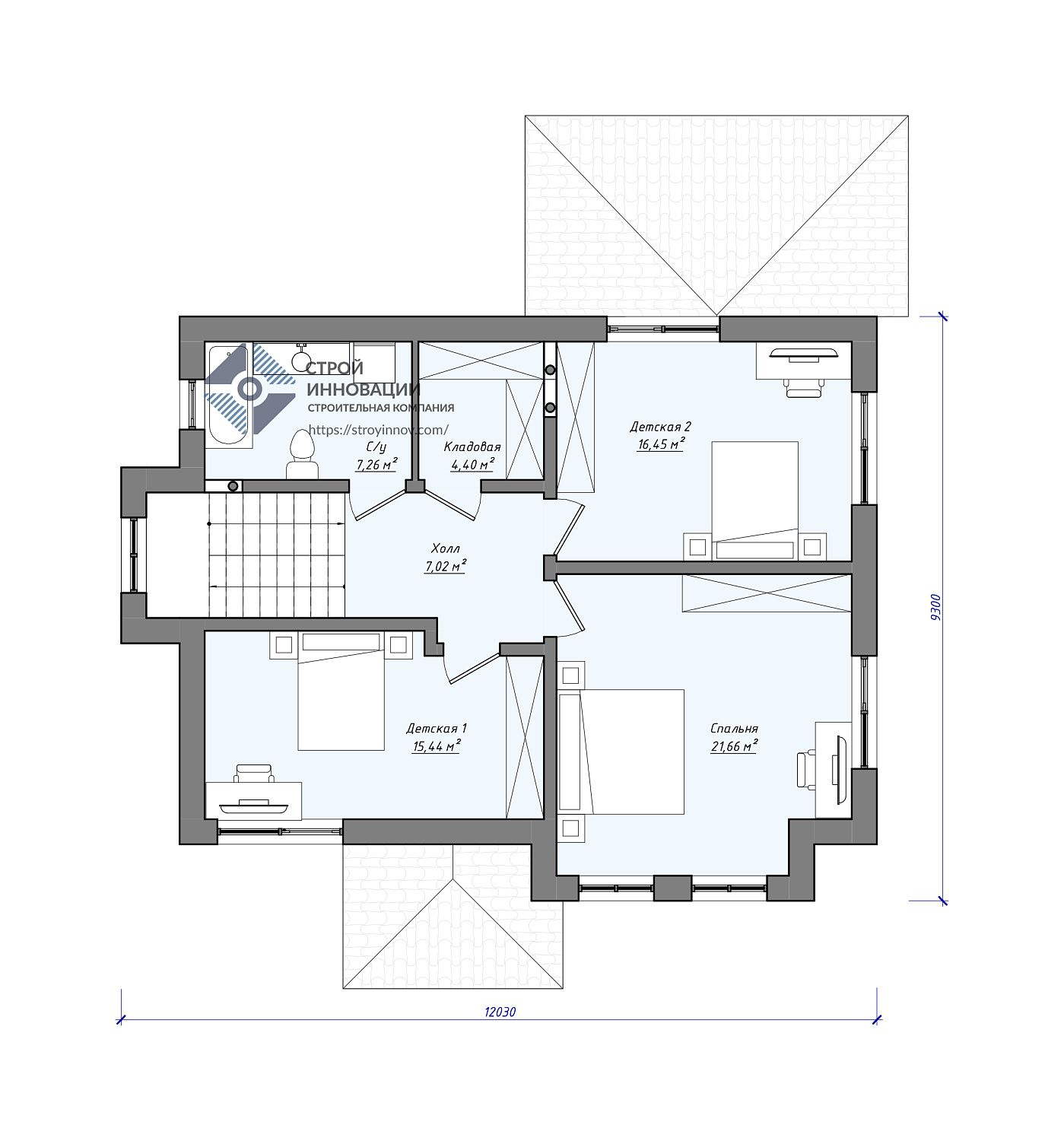 - Угол наклона кровли - от 12° до 21°
