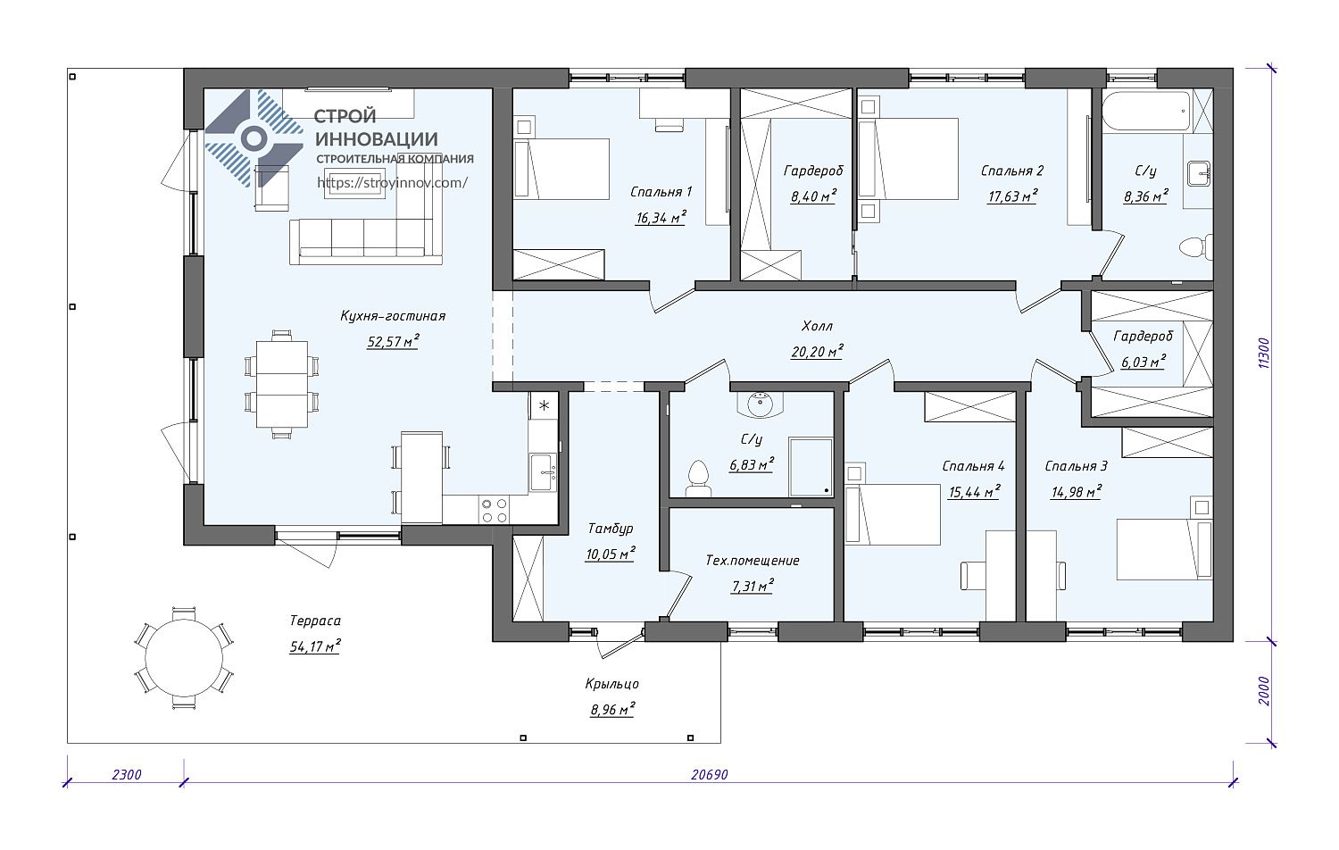 - 4 спальни