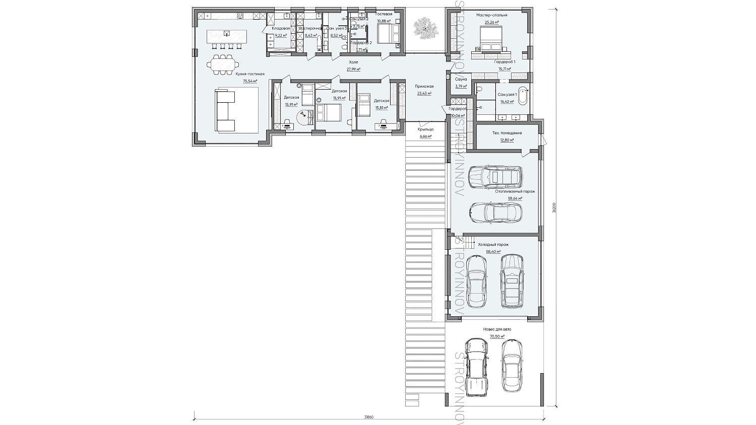 - Габариты дома - 36,2*31,9 м